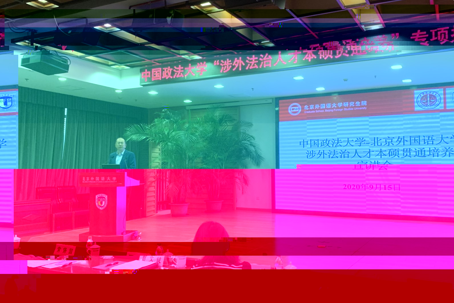 The Special Seminar on the Promotion and Exemption of Student Enrollment of the CUPL-BFS Foreign-Related Legal Personnel Master Pass-Through Training Programme was held at the Beijing Foreign Studies University (BFS) on the morning of 15 Sept, 2020.